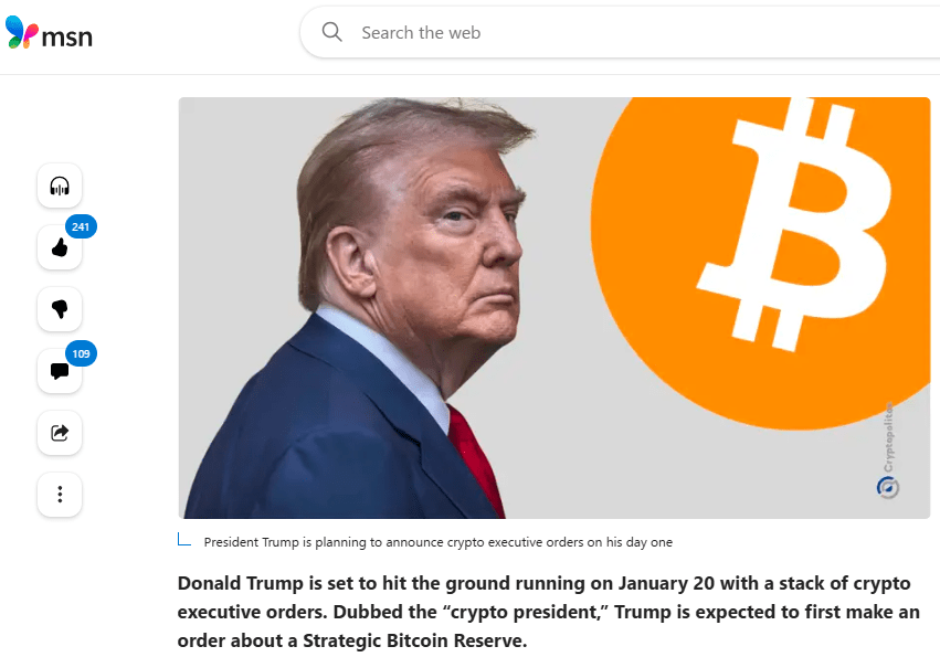 *Trump will be our first “Crypto President! Tech leaders will be featured at the inauguration and there’s even going to be a “Crypto Ball” honoring Trump as our first “Crypto President.”