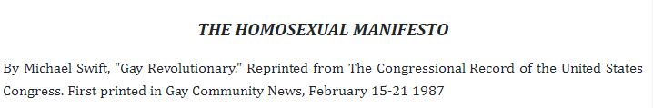 And lastly, remember to have children leave the room, The Homosexual Manifesto: