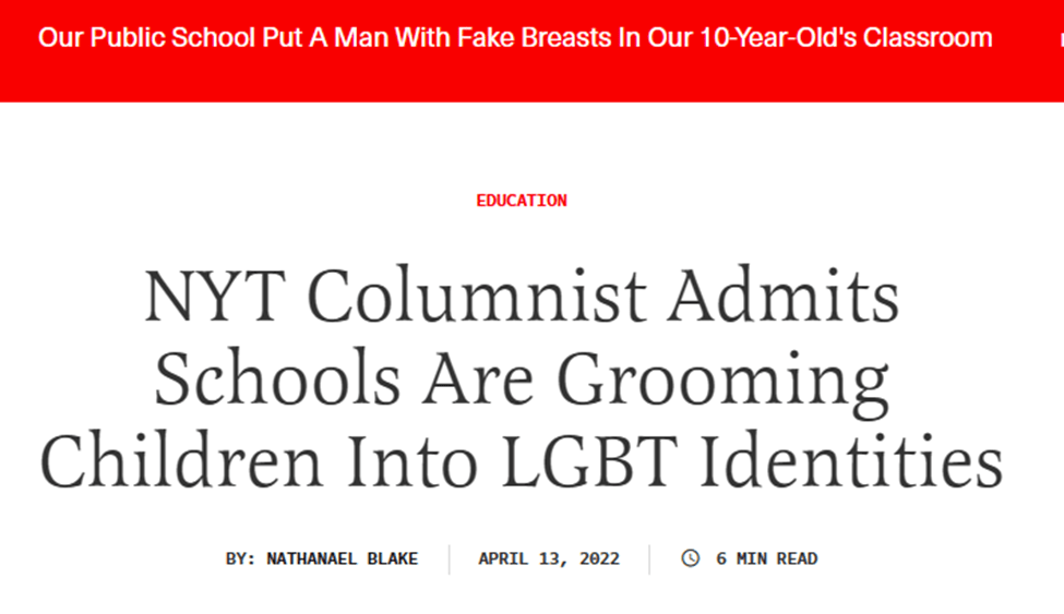 Many schools are indoctrinating children the minute they step foot in the kindergarten classroom, as evidenced by the outrage over Florida governor Ron DeSantis putting a stop to gender ideology in grades K-3. I personally think it should be all grades, but that was a start.