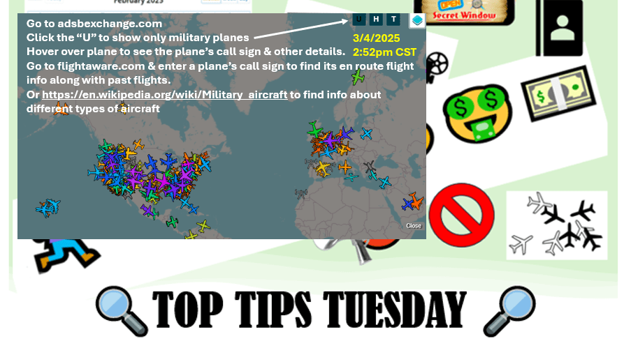 03.04.2025 What’s going on with all these military planes today in the US & UK? How to keep up with military flights and what each plane type is used for! adsbexchange.com Share this: Click to share on X (Opens in new window) X Click to share on Facebook (Opens in new window) Facebook Like Loading... Related