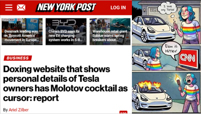 They went from adoring Elon Musk to doxxing people who drive one of his cars.