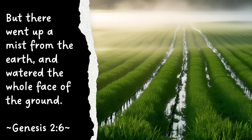📖 Genesis 2:6 But there went up a mist from the earth, and watered the whole face of the ground.